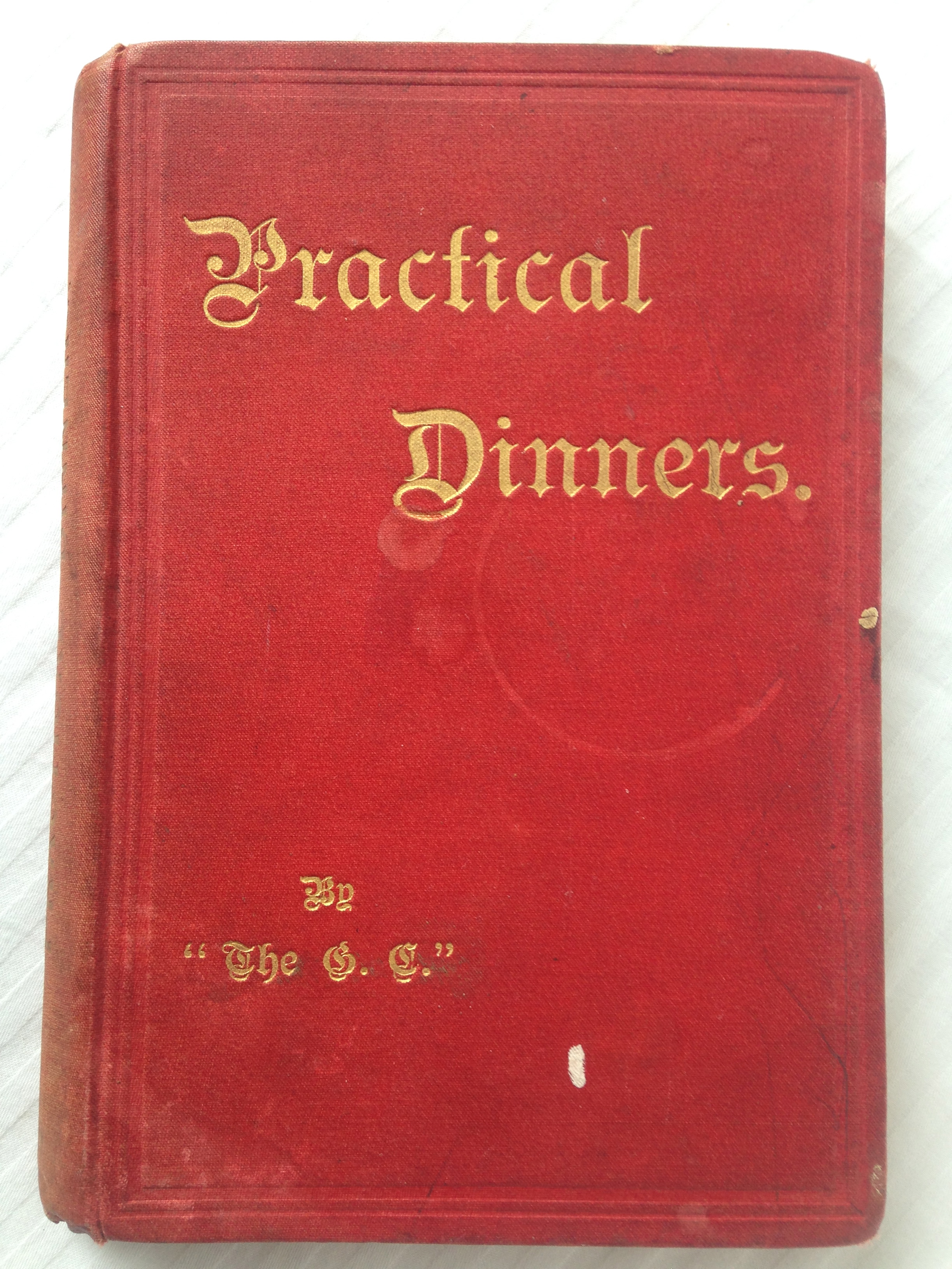 It is called ‘PRACTICAL DINNERS – With Plain Directions For Their Preparation’